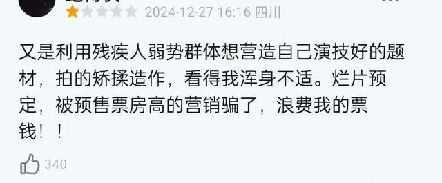 与此同期,对于影片是否挥霍颓势群体的谈论也愈演愈烈,成为影片口碑争议的中枢。一些不雅众觉得,影片通过聚焦脑瘫患者等颓势群体的生计,试图唤起社会对这一群体的关注和轸恤。议论词,另一些东说念主则品评影片在呈现这些群体的痛楚时,过于追求戏剧成果和票房诱导力,有挥霍颓势群体之嫌。