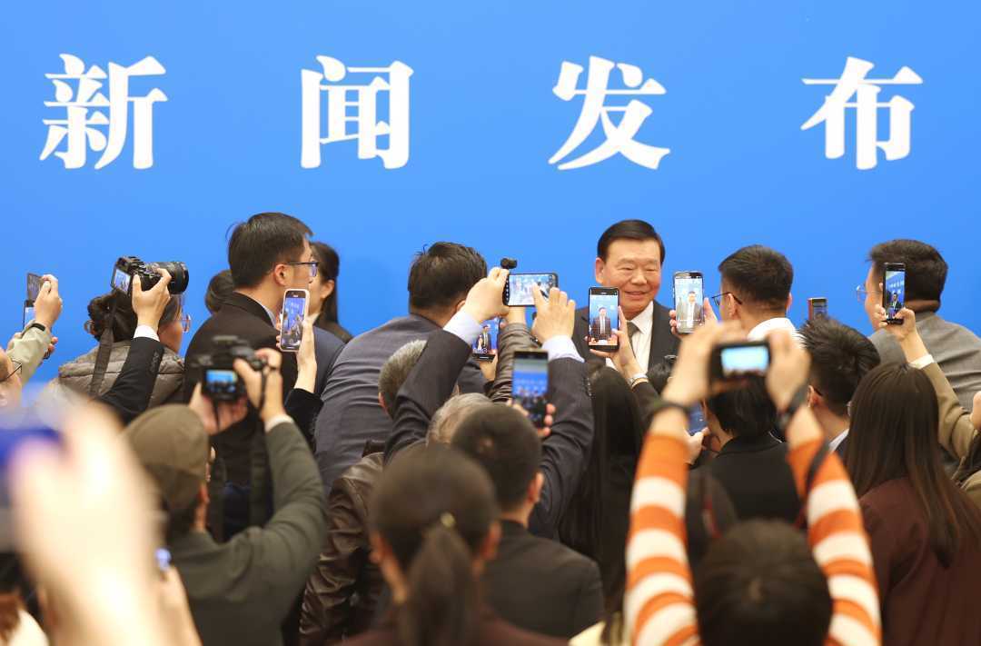 3月4日,十四届世界东谈主大三次会议在北京东谈主民大礼堂举行新闻发布会。大会发言东谈主娄节约就大会议程和东谈主大使命关连问题回话中外记者发问。图为娄节约在会后与记者磋议。经济日报记者雅瞻念贵摄
