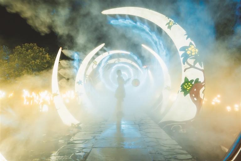 “稻田奇遇记”夜游以乡愁为主题,磋议童年缅念念,打造出集蝴蝶谷、森林栈谈、奇妙月相、流光梯田、高明探洞等多个梦境场景于一体的夜游阶梯。踱步其中,看当然与光影协调交汇,回话出最实在的童年幻梦,让你千里浸式体验这场魔幻狂放的夜游之旅。