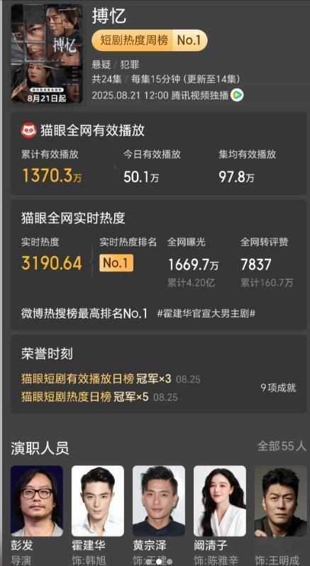 曾几何时,短剧还被贴着“快节律、低制作、流量堆砌”的标签,而如今,跟着霍建华、黄宗泽、阚清子领衔主演的悬疑短剧《搏忆》的推出,这一局面正在被冉冉冲突。